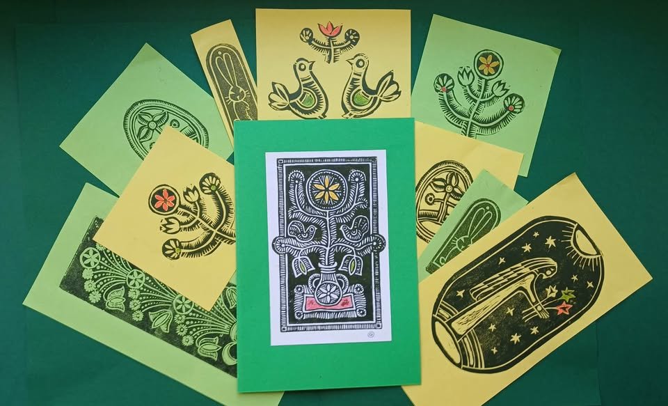 Kviečiame į kūrybines dirbtuves ATVERK PAVASARĮ 🌿 Dalyviai naudodami paruoštas grafikos klišes susikurs spalvingą sveikinimą Kovo 11-tai ir šv. Velykoms ☀️🌱🌷