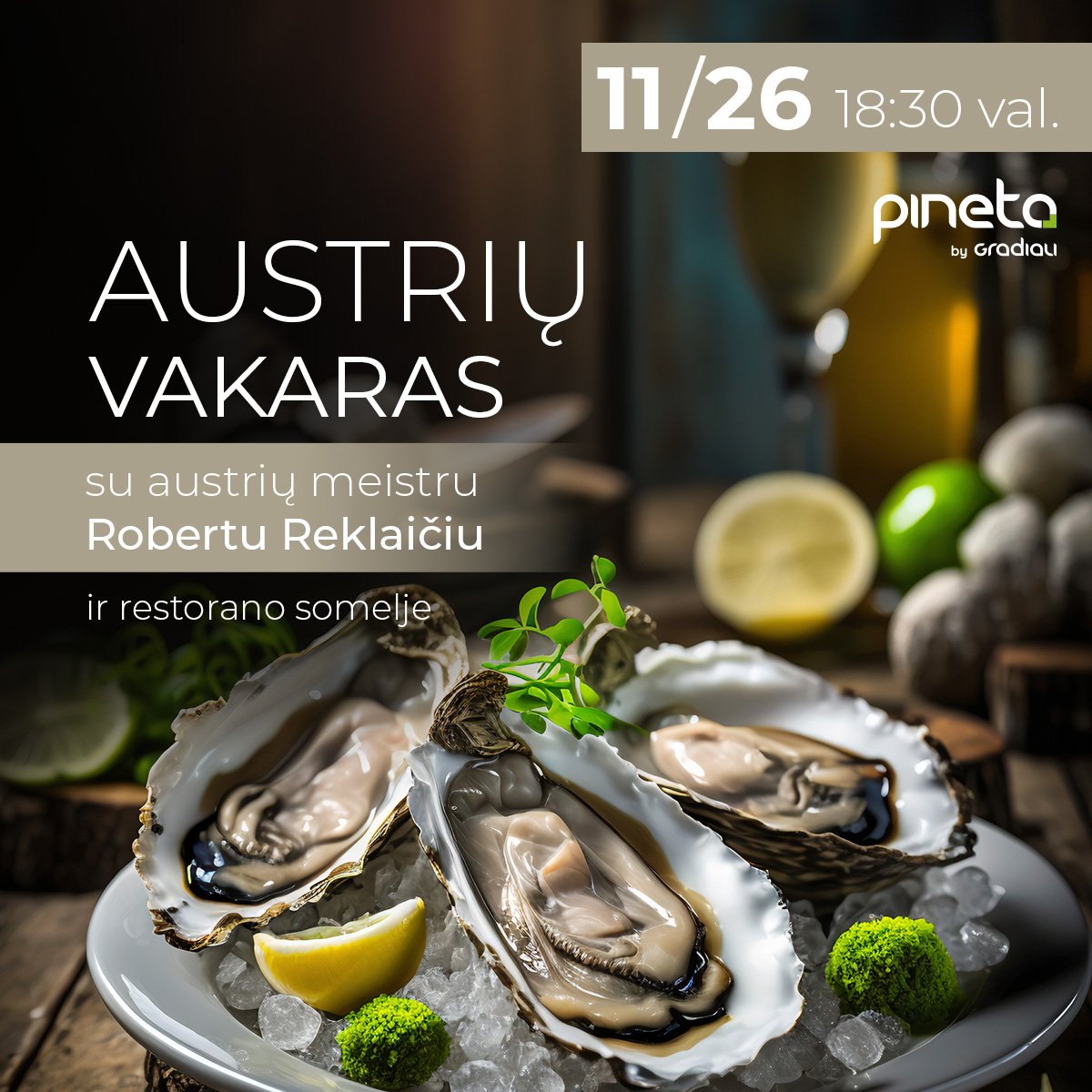 Išskirtinė proga visiems austrių gurmanams – į naujus patyrimus ir žinias pasinerti kviečianti austrių ir incognito vynų degustacija „Pineta“ restorane!