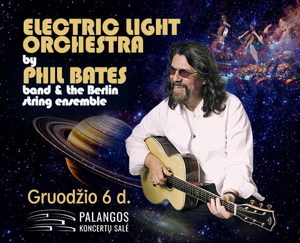 Gruodžio 6 dieną geros muzikos gurmanai kviečiami į išskirtinį koncertą, dedikuotą vienos įtakingiausių XX amžiaus aštuntojo dešimtmečio britų roko grupių „Electric Light Orchestra“ kūrybai. Šeštadienio vakarą visus legendinių „ELO“ hitus scenoje atliks dainininkas ir gitaristas Philas Batesas su savo grupe „Electric Light Orchestra by Phil Bates Band“, akompanuojant Berlyno styginių kvartetui.