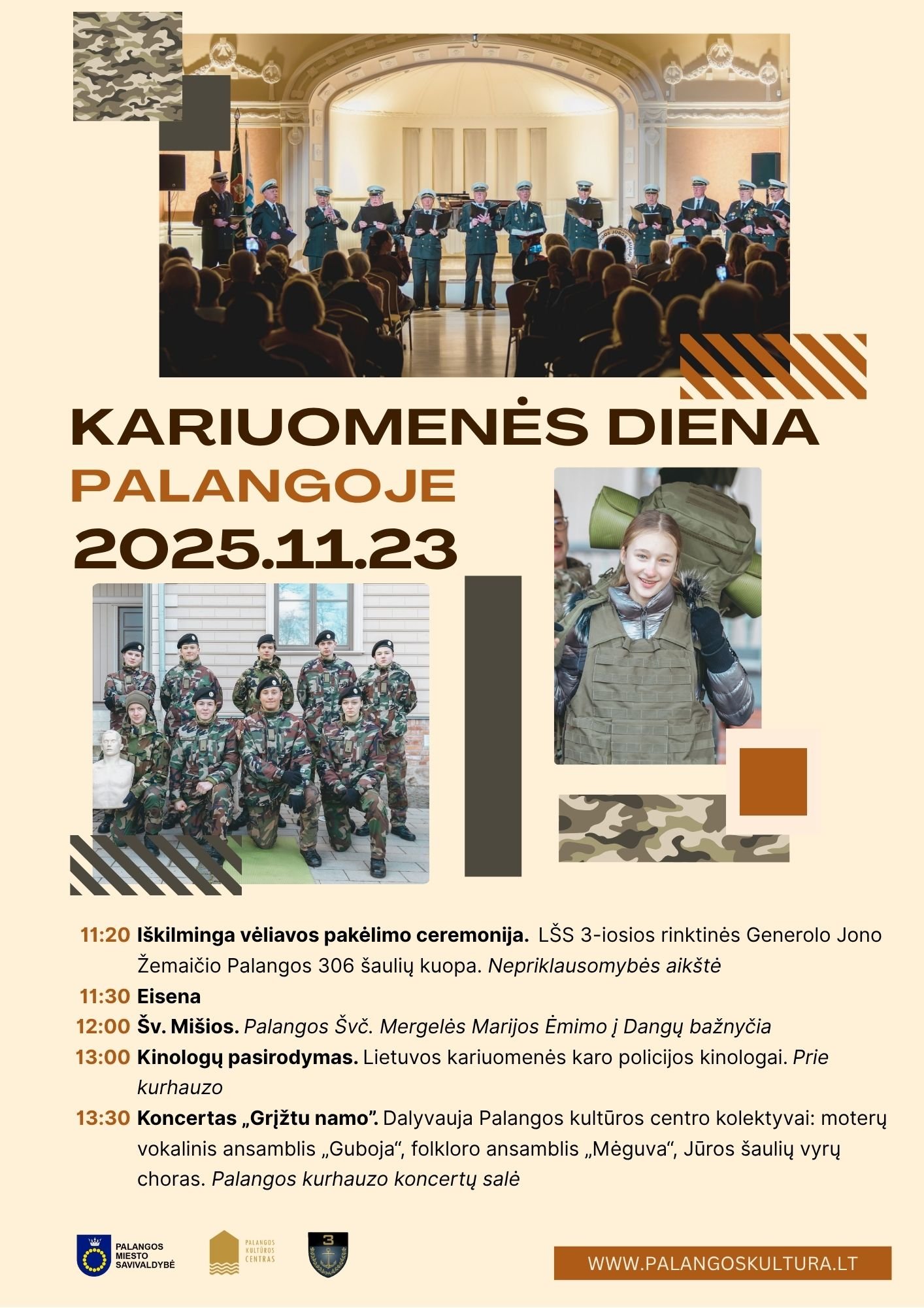 Lapkričio 23-iąją Palanga kviečia kartu paminėti Lietuvos kariuomenės dieną – pagarbos, atminimo ir stiprybės šventę, kai prisimename visus, kurie saugojo ir saugo mūsų valstybę, o kartu švenčiame gyvą tautos dvasią.