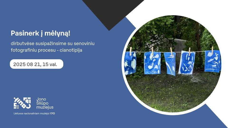 Dirbutvėse susipažinsime su senoviniu fotografiniu procesu – cianotipija. Kūrybiškai pasitelkiant gamtoje randamas priemones, kursime mėlynus augalų atspaudus – paveikslėlius.
