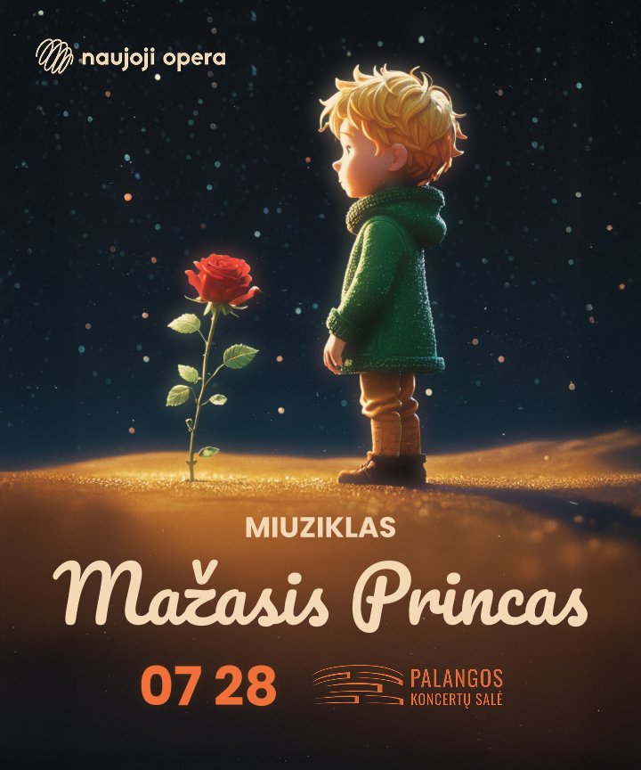 Šią vasarą, liepos 28 d., Palangos koncertų salė kviečia žiūrovus į miuziklą visai šeimai „Mažasis princas“, pastatytą pagal garsųjį Antoine de Saint-Exupéry kūrinį – vieną skaitomiausių pasaulio literatūros šedevrų. Tai jautri, vizualiai turtinga muzikinė istorija, kurioje susijungia scenos menas, gyva muzika ir poetiškas pasakojimas.