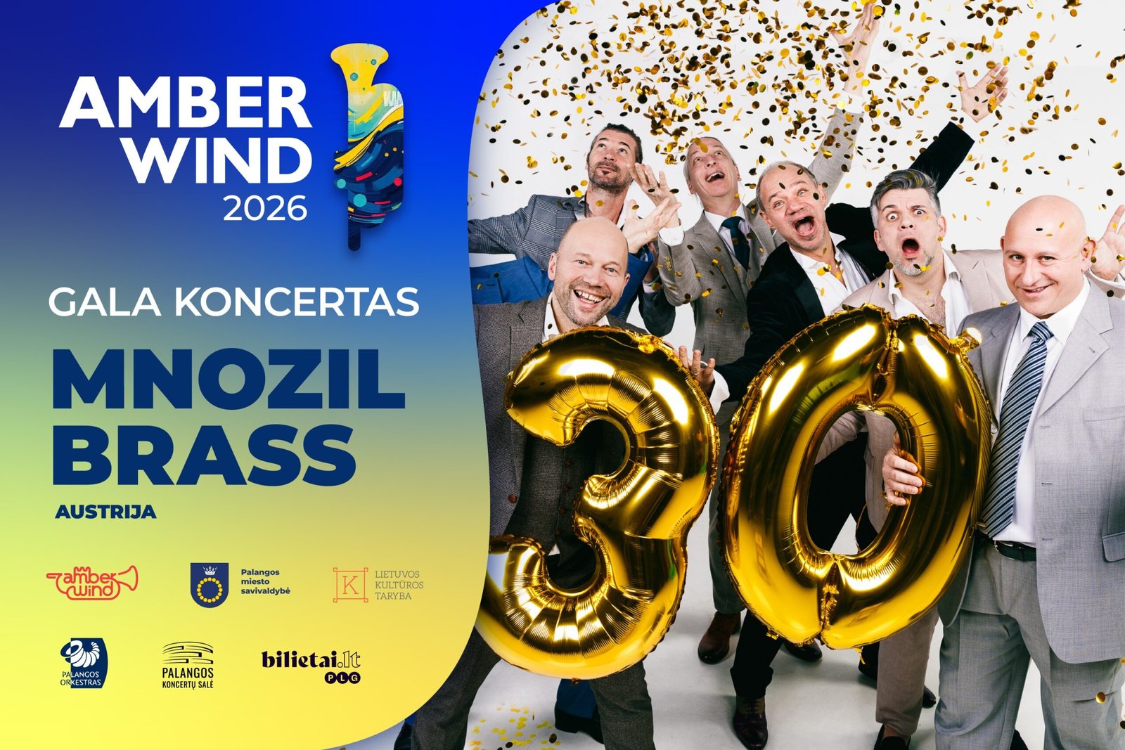 Festivalis AMBER WIND 2026 su pasididžiavimu pristato neeilinį gala koncertą – gegužės 23 d. Palangos koncertų salėje šventinį pasirodymą surengs žymiausias austrų varinių pučiamųjų septetas „Mnozil Brass“.