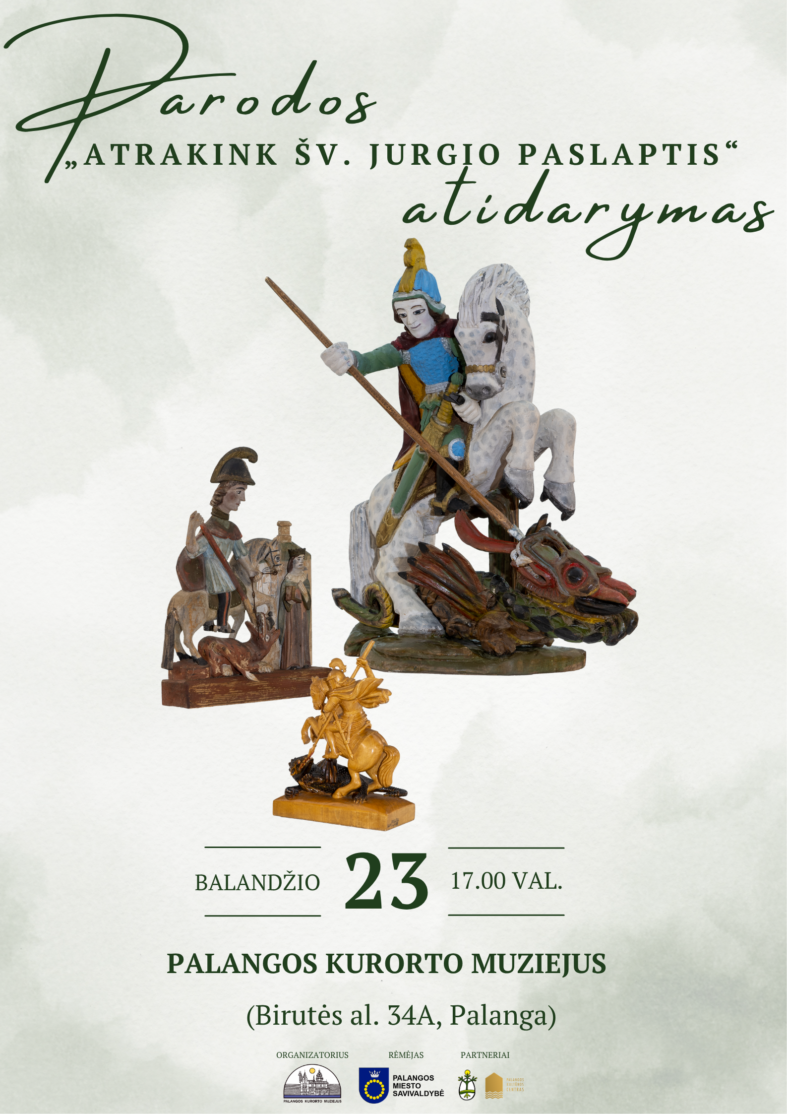 Jau daugiau nei tris dešimtmečius Palangoje puoselėjama Jurginių šventė „Jurgi, paimk raktus“, kuri yra įtraukta į Lietuvos nematerialaus kultūros paveldo vertybių sąvadą. Šiais metais Palangos kurorto muziejus taip pat prisideda prie šios šventės paroda „Atrakink šv. Jurgio paslaptis“. Joje sutelkiamos Lietuvos muziejuose ir privačiose kolekcijose saugomi įvairiausi šv. Jurgio pavidalai: įvairūs meno kūriniai, religiniai atributai ir kitos rečiau sutinkamos vaizdavimo formos. Išskirtinę vietą užima Lietuvos etnografiniams regionams būdingi šv. Jurgio dievdirbių darbai. Šv. Jurgio istorija Palangos kurorto muziejuje apima net 500 metų laikotarpį. Parodos laikas: 2026 m. balandžio 23–birželio 14 d.
