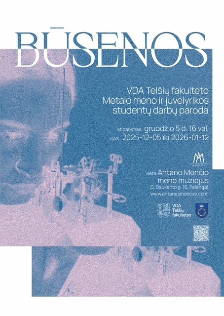 2025 m. gruodžio 5 d. 16 val. Antano Mončio meno muziejuje (S. Daukanto g. 16, Palanga) atidaroma Vilniaus dailės akademijos Telšių fakulteto Metalo meno ir juvelyrikos studijų programos studentų darbų paroda „Būsenos“.