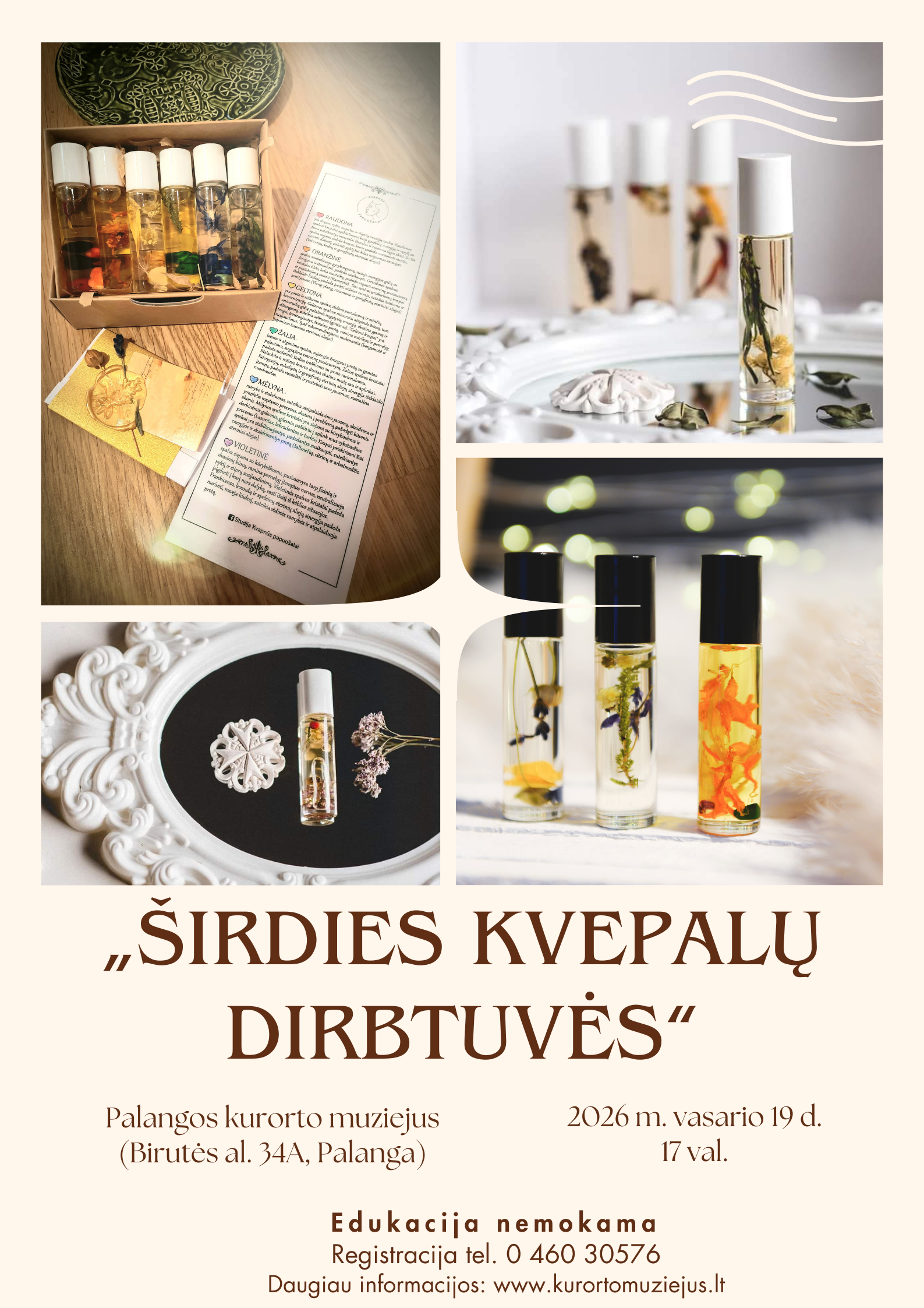 Aromaterapinių kvepalų edukacija – tai kvapni kūrybinė kelionė, skirta tiek pradedantiesiems, tiek pažengusiems kvapų mylėtojams. Edukacijos metu dalyviai supažindinami su eterinių aliejų poveikiu emocinei ir fizinei savijautai, išmoksta kurti individualias kvapų kompozicijas, kurios atspindi jų asmenybę arba siekiamą emocinę būseną. Naudojami tik aukštos kokybės eteriniai aliejai ir migdolų aliejaus bazė, o kiekviena kvapų sinergija kuriama atsižvelgiant į žmogaus norus bei poreikius.