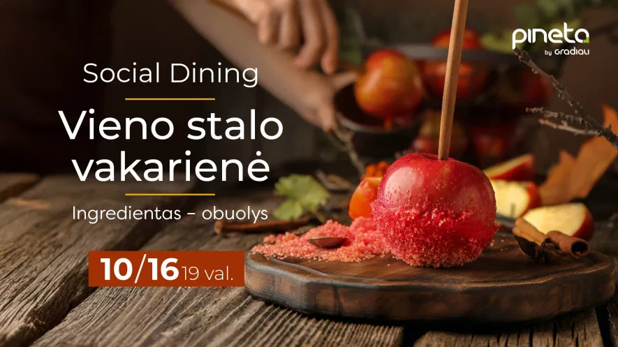Social dining. Vieno stalo vakarienė. Pagrindinis ingredientas – Obuolys