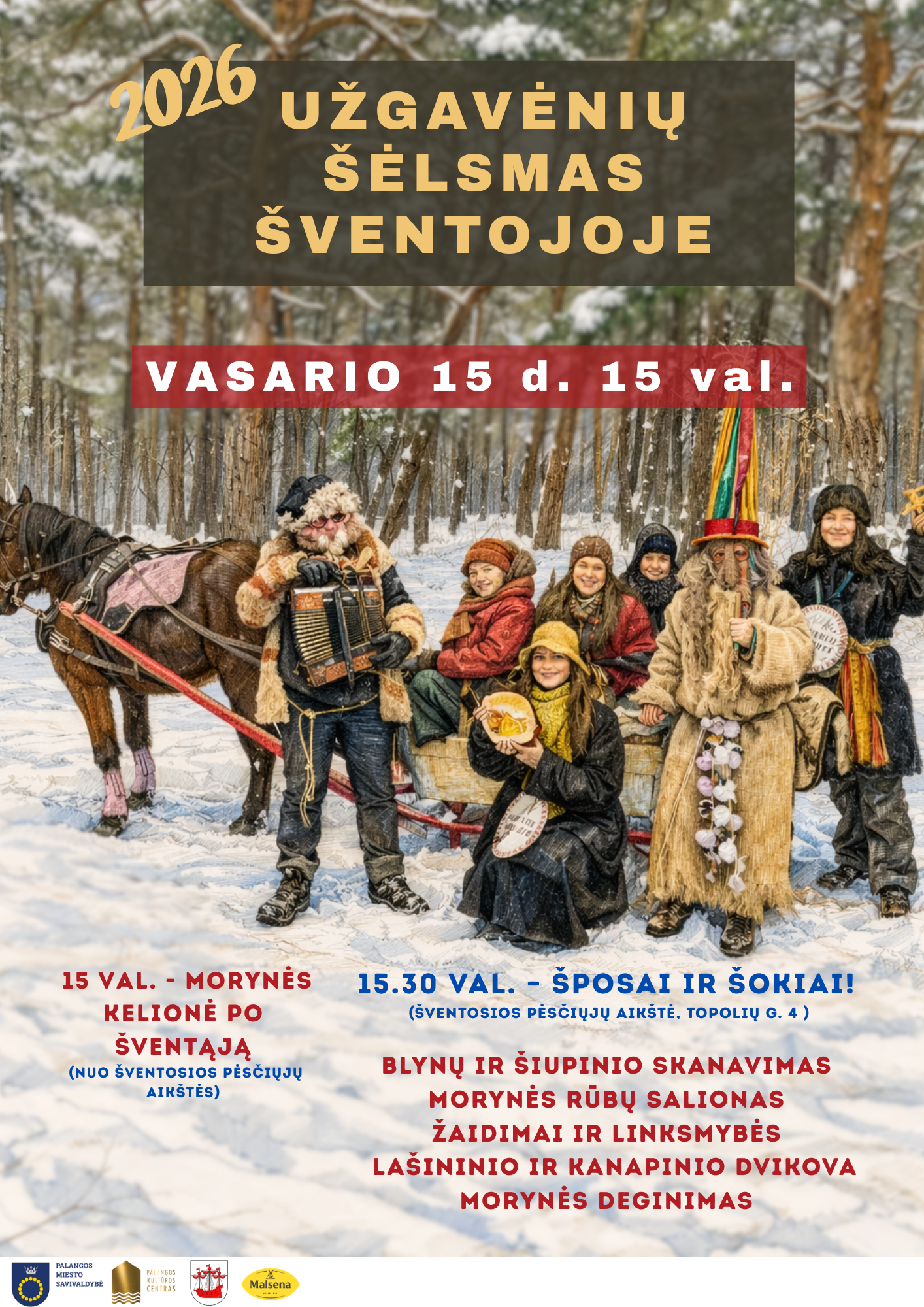 Vasario 15-ąją kviečiame visus mažus ir didelius, iš Palangos, Šventosios ir visos Lietuvos užsidėti kaukes, atsinešti skaniausių blynų, pasinerti į šventinį šėlsmą ir kartu išlydėti žiemą!