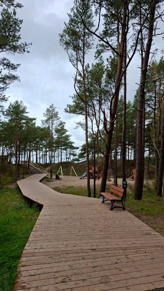 Erdvėje mediniai takai per mišką ir kopas, basų kojų takas, vaikų žaidimų erdvė, apžvalgos aikštelė su vaizdu į jūrą, informaciniai stendai apie Melno taiką, istorinius įvykius ir vietovės gamtą.